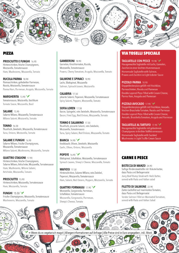 Entdecken Sie unsere vielfältige Auswahl an italienischen Klassikern im Via Toselli.